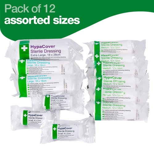 The HypaCover Sterile Dressing is a premium quality wound dressing made to meet HSE first aid recommendations and NHS standards. The individually wrapped dressings are an essential item for any well-stocked first aid kit, and are included in the list of required components for BS 8599-1 and BS 8599-2 compliant kits.